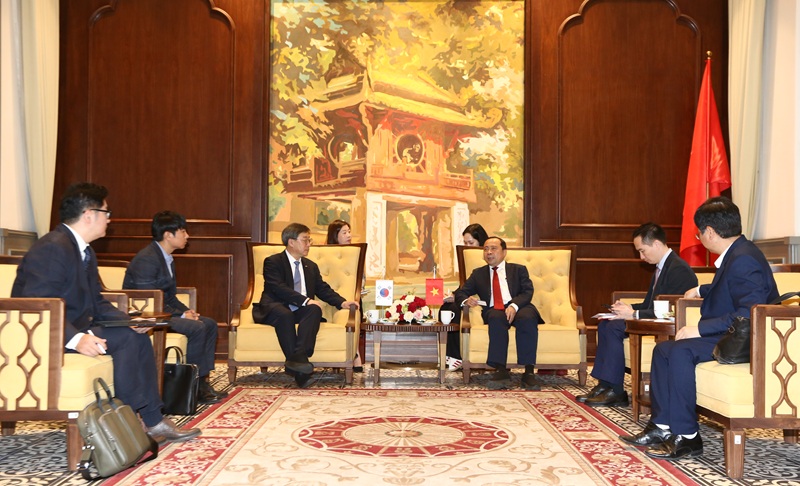 Thứ trưởng Thường trực Bộ KH&CN Vũ Hải Quân tiếp và làm việc với ông Park Yunkyu - Chủ tịch Cơ quan Xúc tiến Công nghiệp CNTT Quốc gia Hàn Quốc (NIPA).